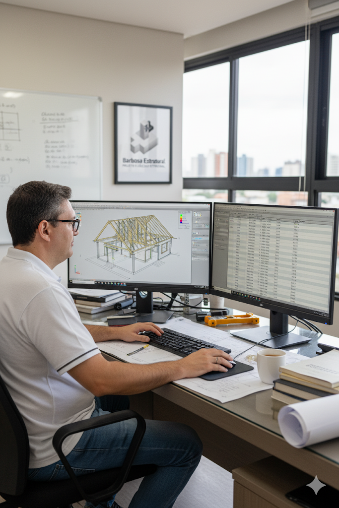 O cálculo estrutural envolve várias etapas, todas realizadas por engenheiros civis com experiência em projetos residenciais: