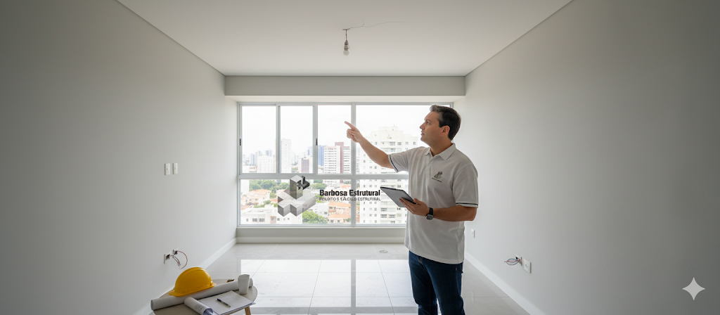 O primeiro ponto é verificar a integridade estrutural. Trincas, fissuras, rachaduras no teto ou nas paredes devem ser registradas, pois podem indicar movimentações na estrutura.