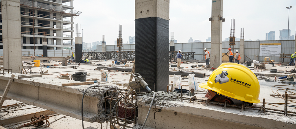 • Exoesqueleto de aço ou concreto: Instalação de elementos estruturais adicionais ao redor da estrutura existente.