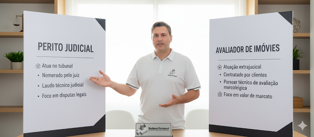 Diferente do perito judicial, o avaliador de imóveis pode atuar de forma privada, contratado por clientes, imobiliárias, construtoras ou bancos, sendo responsável por fornecer análises técnicas confiáveis, mas sem a necessidade de manter neutralidade judicial.