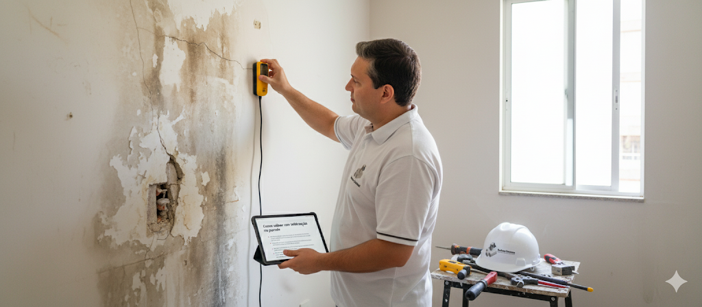 - Teste de umidade: use higrômetros ou fitas indicadoras para medir o nível de umidade na parede.