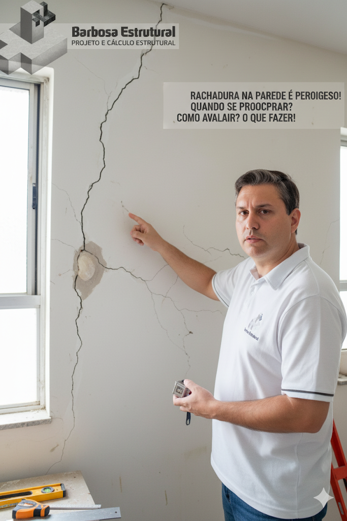 Tire fotos da rachadura, registre a data e, se possível, acompanhe a evolução com medições periódicas.
