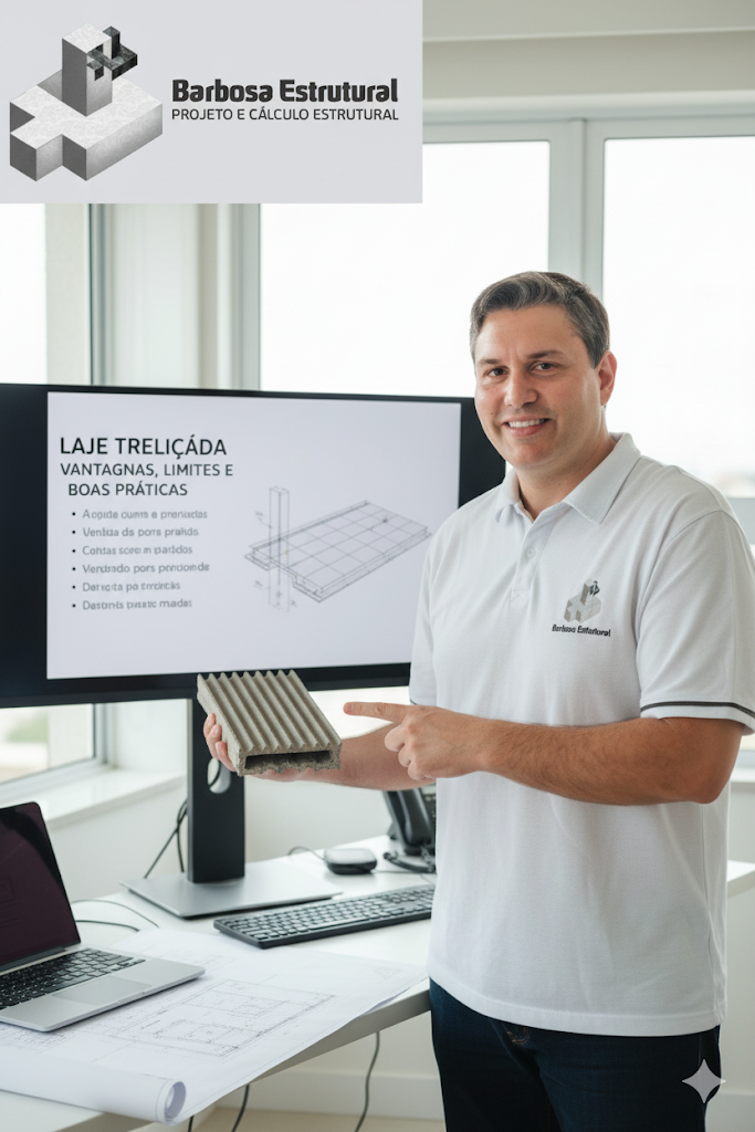 - Economia potencial vs laje maciça: 10–25% no m² em obras de padrão comum, vãos 3–6 m.
