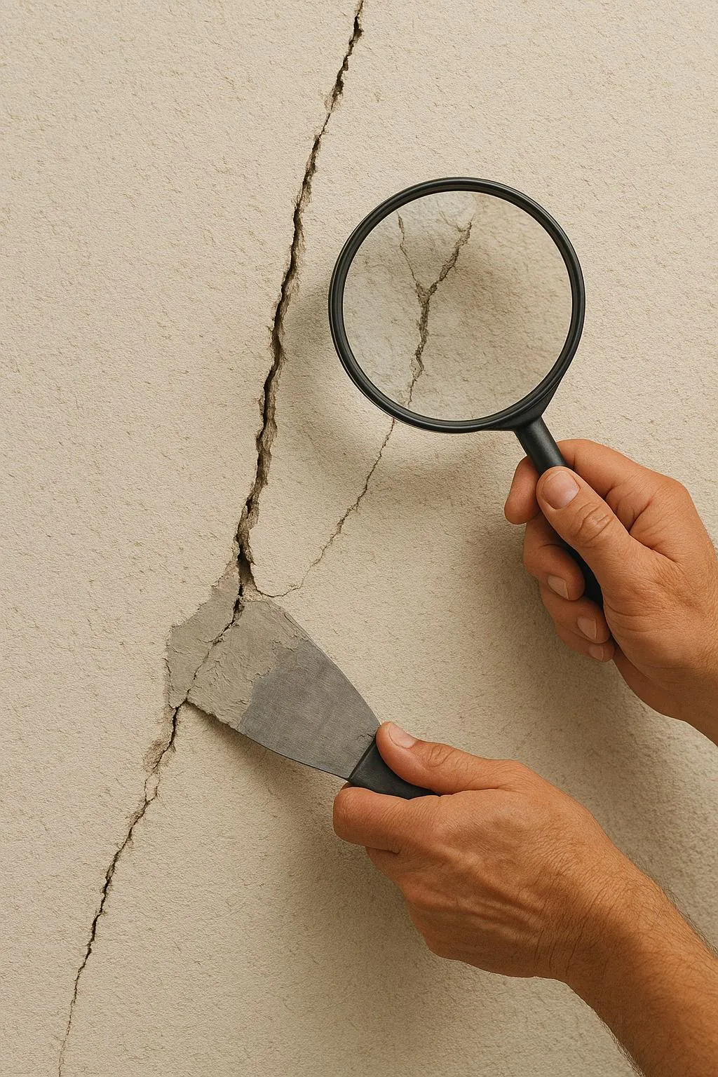 - Lanterna de Luz Rasante: Em um ambiente escuro, ilumine a parede lateralmente (luz paralela à parede). Isso cria sombras nas microfissuras que seriam invisíveis de frente.