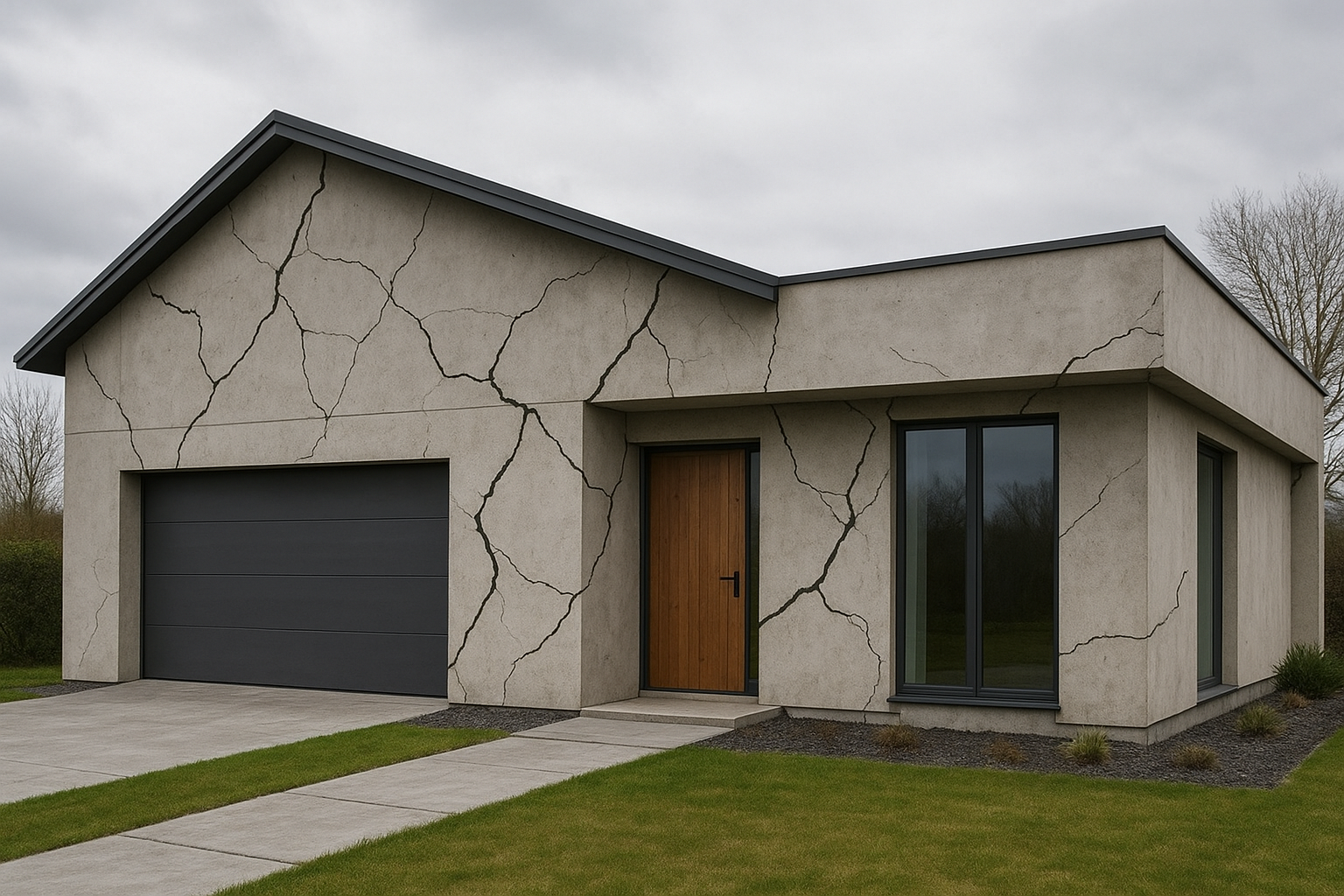 - padrão em “mapa/couro de crocodilo” no reboco